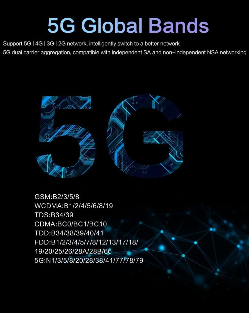 5G: N1/3/5/8/20/28/38/41/77/78/79