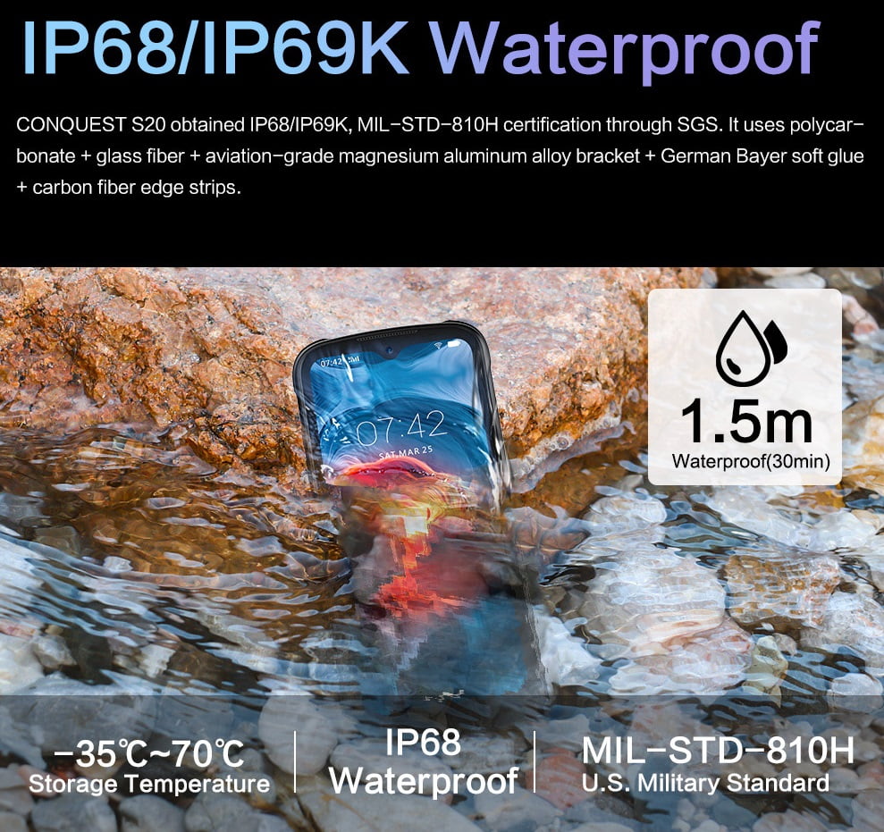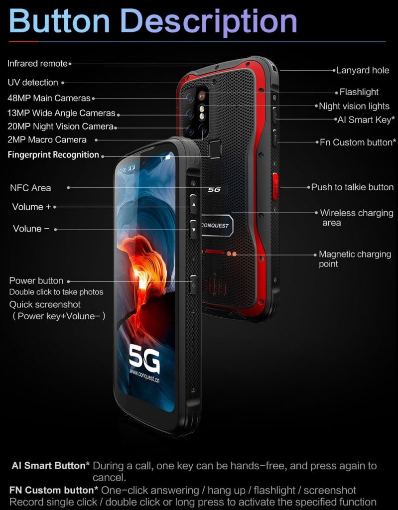 Conquest S20 5G 6.3 Inch Night Vision Smartphone IP68 Waterproof 48MP Four Camera 8GB RAM 256GB ROM Global Version