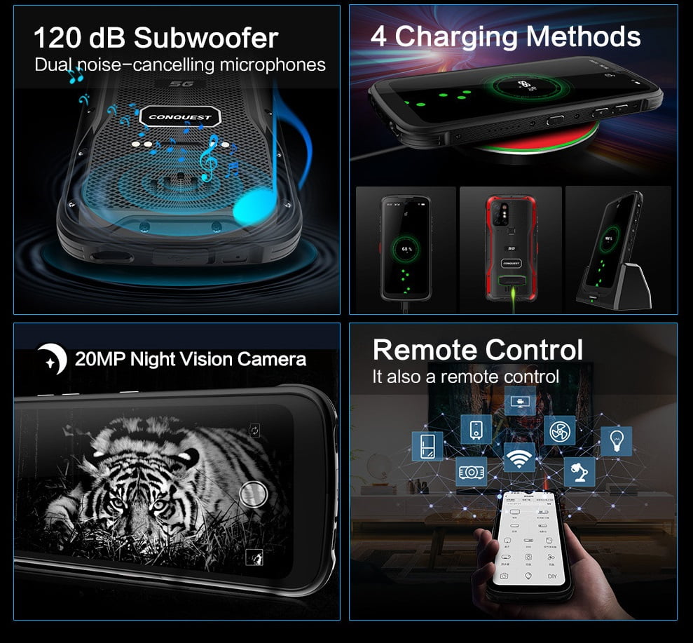 Conquest S20 5G 6.3 Inch Night Vision Smartphone IP68 Waterproof 48MP Four Camera 8GB RAM 256GB ROM Global Version
